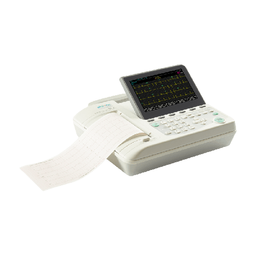• 6 kanallı • 7 inç 800×480 renkli LCD ekran • Tam dolu batarya ile 1 saat işletim süresi • Otomatik, manuel, ritim ve periyodik yazdırma imkanı • Hasta kablosu çıktı alarmı • Dahili hafıza, 1.000 hasta kaydı • HL7/DICOM özelliği